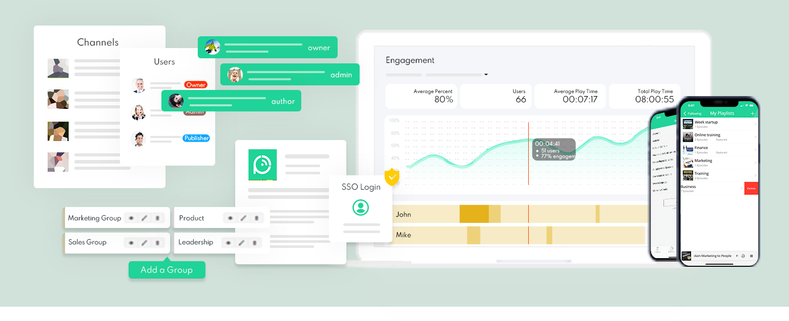The best solution for many companies, and the one Podbean offers, is a secure system in which approved members access private podcasts via a unique login. The member can be removed, for example when they leave the company. Ideally, a system that integrates with your company’s SSO (single sign on) simplifies access for the employee while using your company’s security layer.